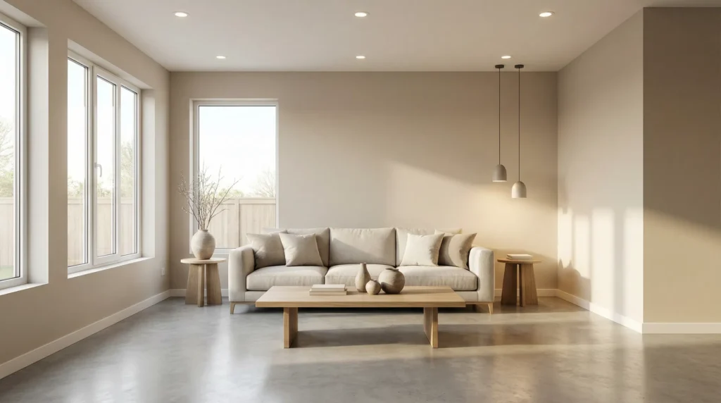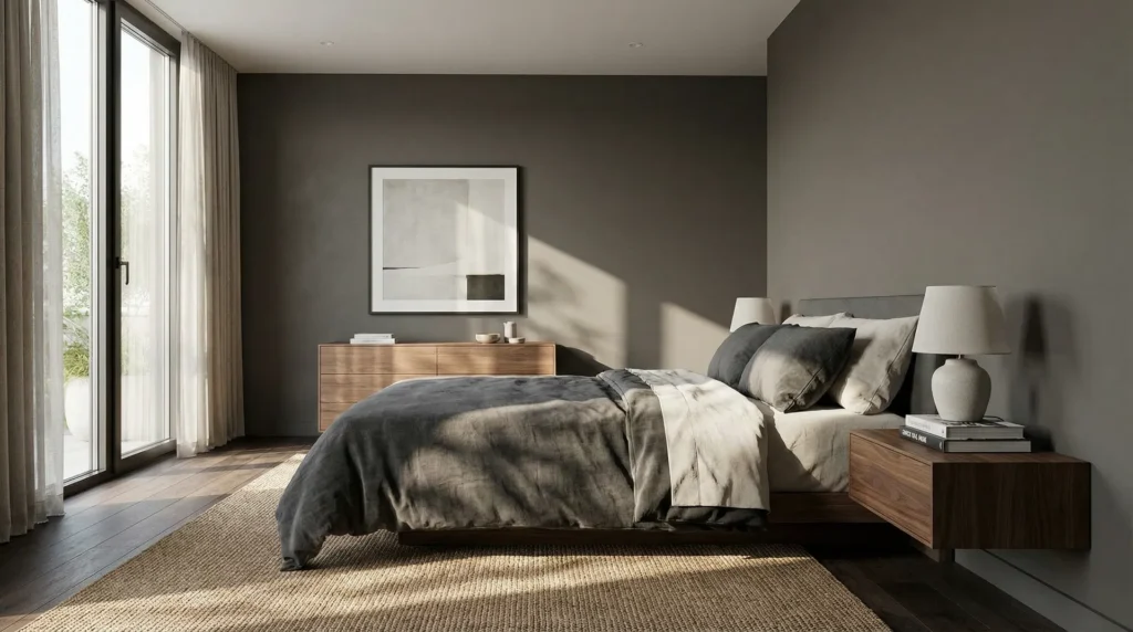 Paleta moderna em cinza quente + acabamento mate premium + espaço transformado